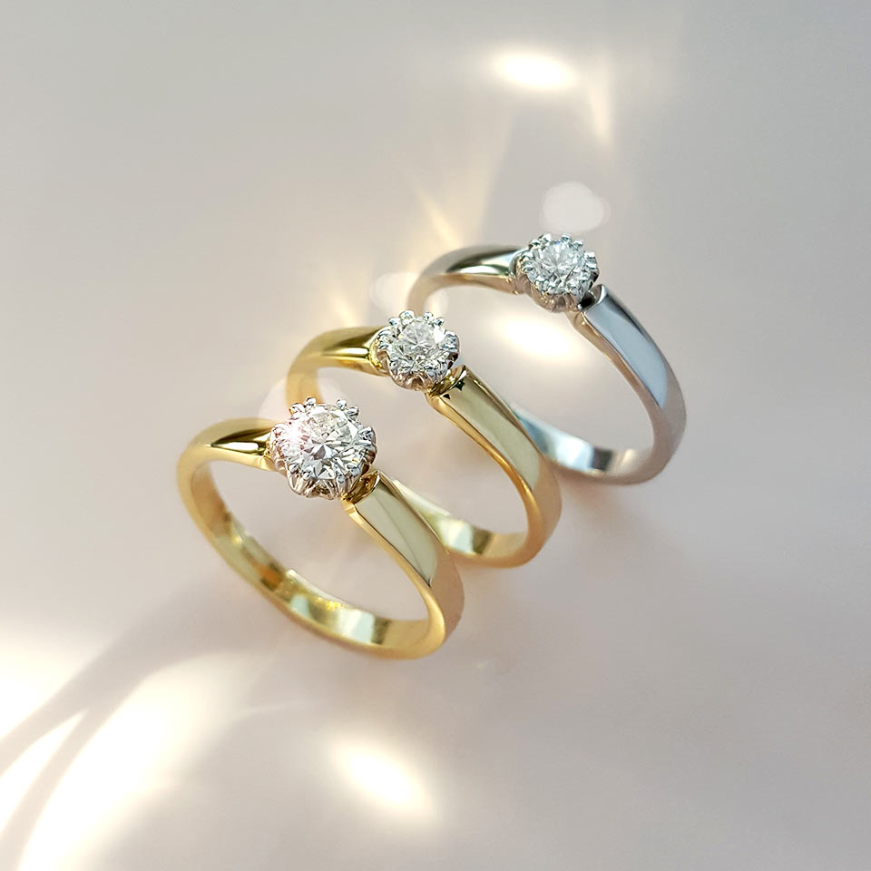 Węc-Twój Jubiler daje swoim klientom możliwość zamówienia pierścionka zaręczynowego z wyjątkowym diamentem, który posiada certyfikat GIA, gdzie można spersonalizować barwę, jasność oraz szlif diamentu.
