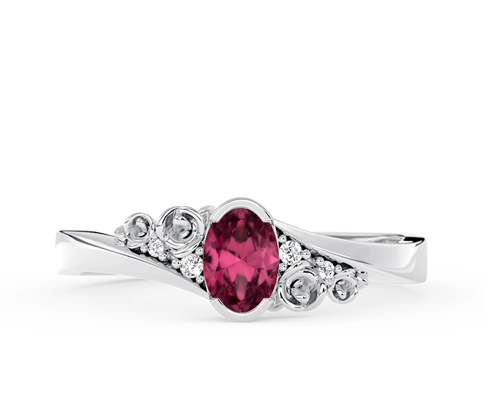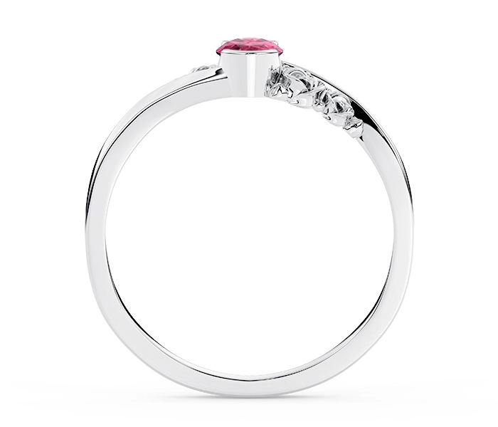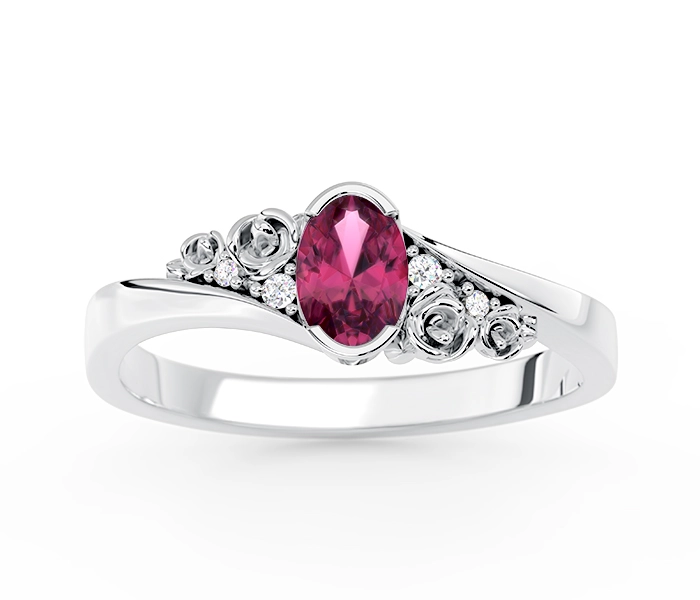 Różany wianuszek okalający drogocenne, rubinowe oczko tworzy urzekającą, składającą się na miłosne wyznanie całość będącą gwarancją, że odpowiedź na jedno z najważniejszych w życiu pytań okaże się pozytywnie oczywista.