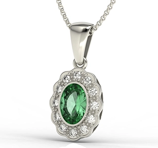 • Wisiorek z białego złota ze szmaragdem i diamentami LPW-79B