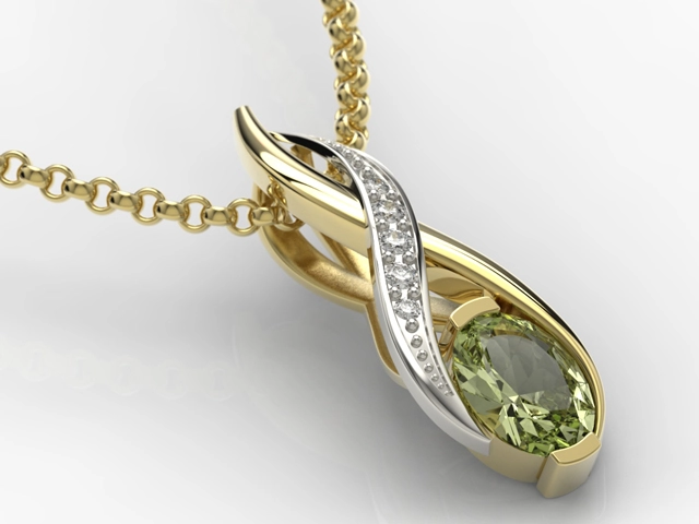 Wisiorek z żółtego i białego złota z oliwinem i brylantami APW-69ZBWisiorek z żółtego i białego złota z oliwinem i brylantami APW-69ZBWisiorek z żółtego i białego złota z oliwinem i brylantami APW-69ZB