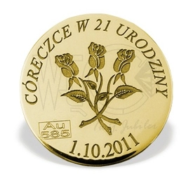 Wyjątkowy "grosz" wykonany ze złota próby 14k. wraz z indywidualną dedykacją wykonaną GRATIS na rewersie oraz specjalną kapsułą ochronną.