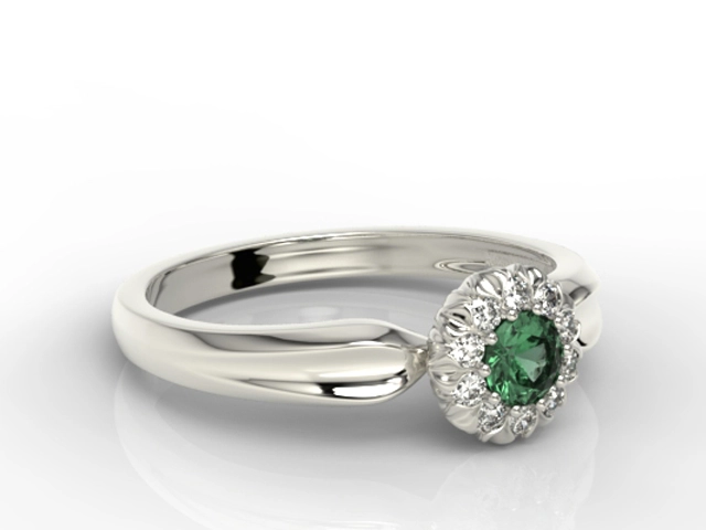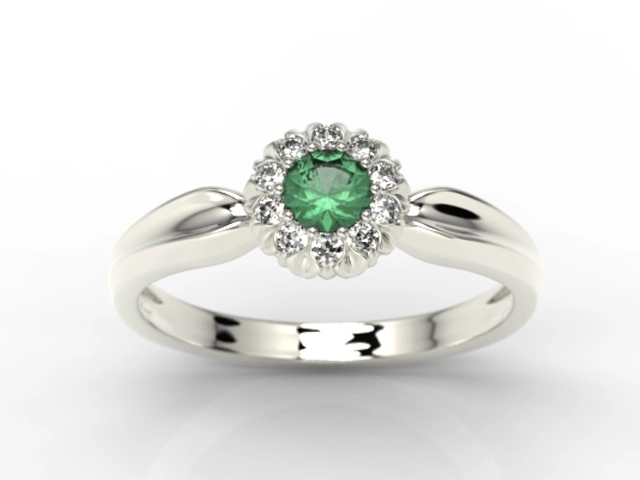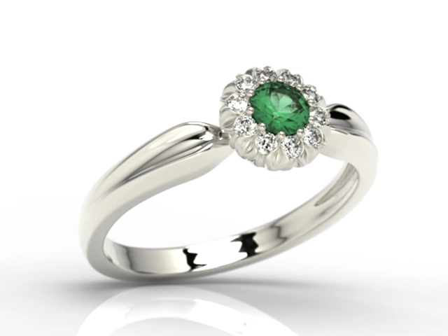 Na pierścionek ten składa się jeden, największy kamień- szmaragd oraz 10 cyrkonii o fasetowym szlifie. Wszystkie kamienie są starannie przymocowane w oprawie z białego złota pr. 0,585, przez co nie musimy się obawiać o ewentualne ich wypadnięcie.