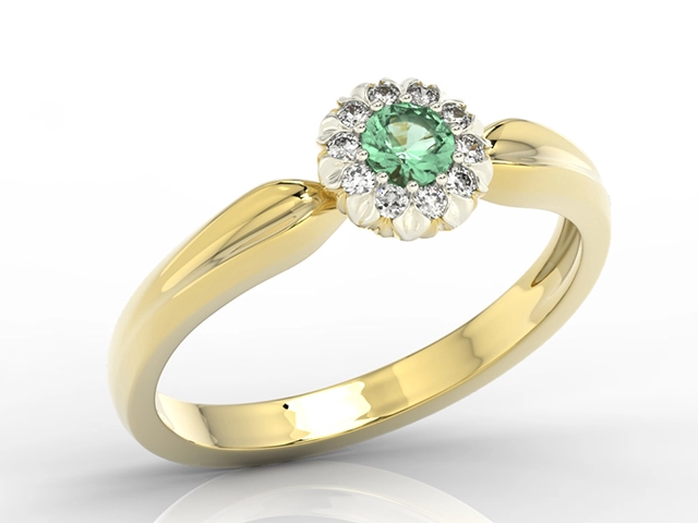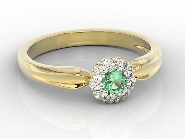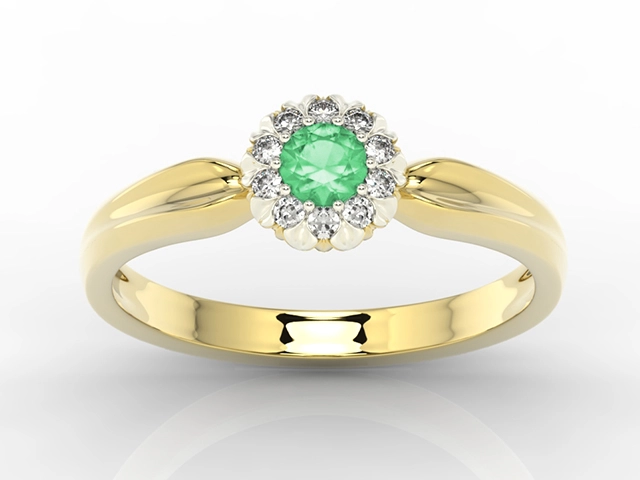 Oto nasza nutka fantazji w wyrobie, szmaragd, który idealnie współgra z cyrkoniami, które tworzą wokół niego pierścień. Szmaragd o głębokiej zielonej barwie potrafi oczarować nie jedną kobietę. Żółte oraz białe złoto pr. 0,585 o łącznej masie wyrobu ok. 2.2 g. Wystarczy tylko włożyć go na palec i poczuć prawdziwą magię dookoła.