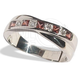 Zestawienie diamentów z granatami to połączenie wyjątkowe, bo choć zwykło się powszechnie uważać, że te ostatnie królują wśród kamieni szlachetnych, to w tym przypadku jednak właśnie granaty stanowią o prawdziwej naturze pierścionka i nadają mu niepowtarzalnego charakteru.