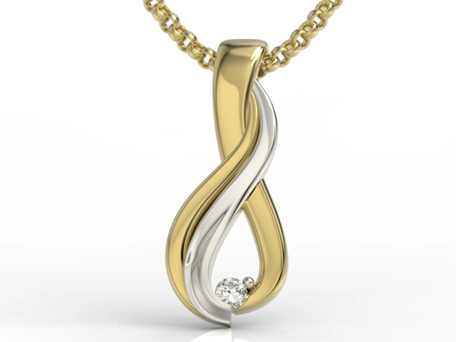 Wisiorek z białego i żółtego złota z diamentem zdobędzie przebojem serce każdej kobiety, a noszony przy każdej okazji – będzie znakomitą i oryginalną ozdobą, która doda jej blasku i życiowej energii.