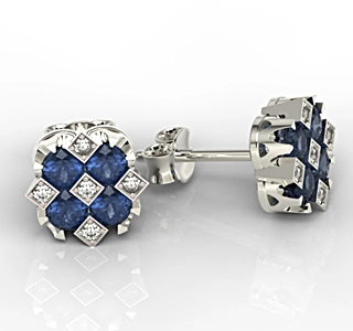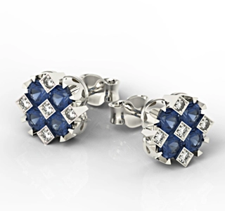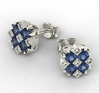 • Kolczyki z białego złota z szafirami i diamentami JPK-56B-SZT