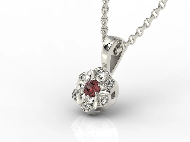 • Wisiorek z białego złota z granatem i brylantami JPW-87B