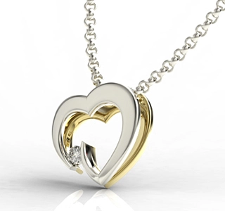 • Wisiorek z białego i żółtego złota w kształcie serca z cyrkonią LPW-95BZ-C