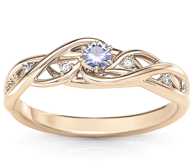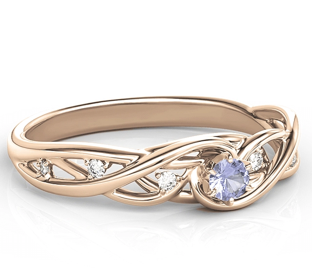 Wpadający w fiolet tanzanit wygląda jakby był zdjęty z różdżki czarodziejki i wprawiony prosto w piękną oprawę pierścionka. Oprawa ta wykonana z różowego złota pr. 0,585. Bogadztwa całości dodają okrągłe brylanciki. Pierścionek urozmaici wieczorową stylizację i mamy nadzieję, że wywoła uśmiech na twarzy pięknej Pani.