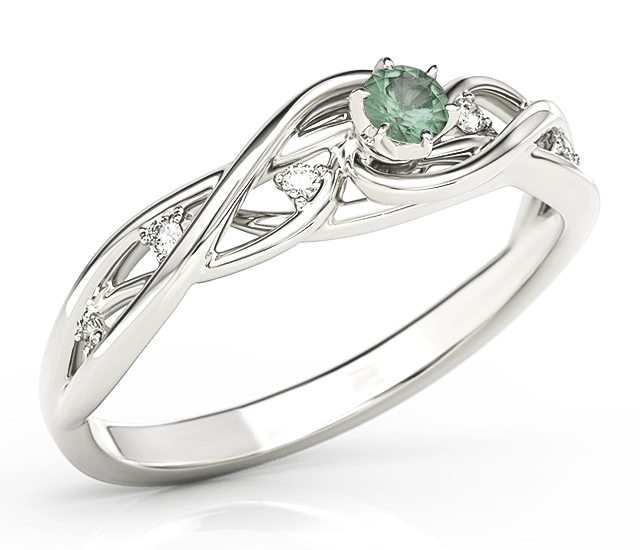 Biała barwa złota pr. 0,585 tworzy ciekawą i przykuwającą wzrok ramę pierścionka, a zarazem kontrast dzięki któremu smaragd jako pierwszy przykuwa nasz wzrok. Szmaragd swoją magią zielonego blasku rozpala ogień w sercach kobiet. Intryguje on i zachwyca na palcu obdarowanej osoby. Nie można zapomnieć o bijących blaskiem okrągłych brylantach. Pierścionek dostępny jest w rozmiarach 6-30.