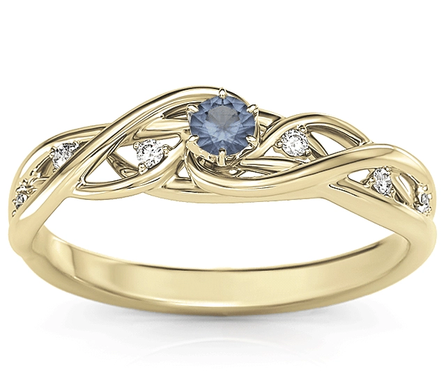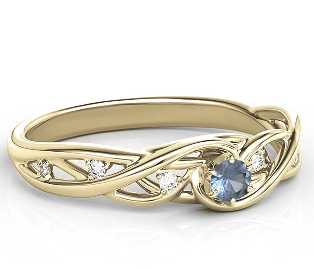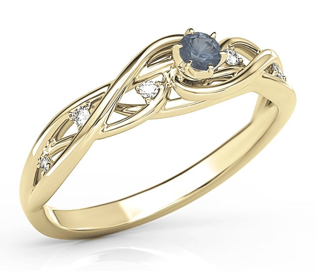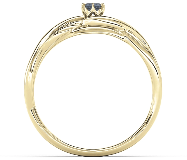 Żółte złoto jest na tyle uniwersalne, że pasuje do każdego typu biżuterii, tworzy spójną całość i urozmaicą stylizację. Niebiesko barwny szafir charakterystycznie wybija się na tle żółtego złota. Bogactwa nadają okrągłe brylanty symetrycznie wprawione po obu stronach. Szafiry są talizmanem przyjaźni, pokoju oraz małżeńskiego szczęścia.