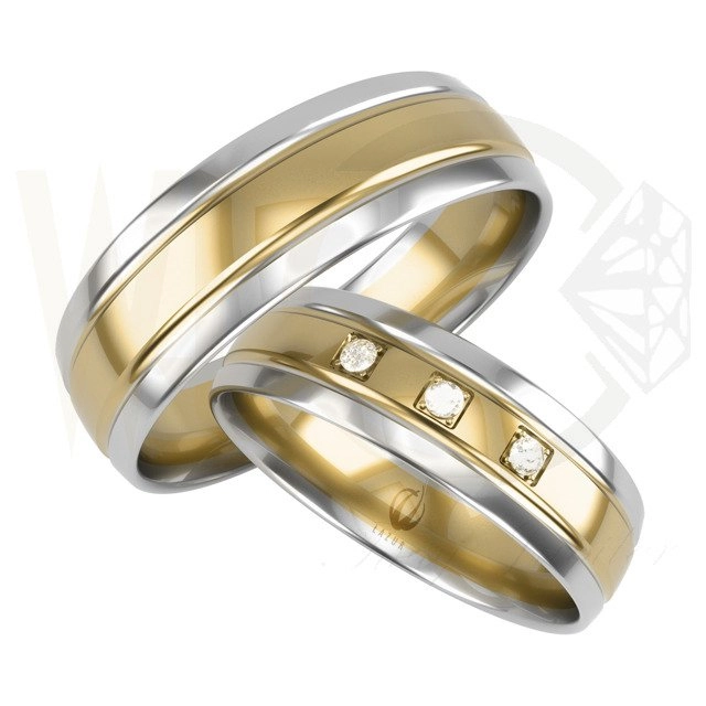Obrączka damska z cyrkoniami, męska bez kamieni.