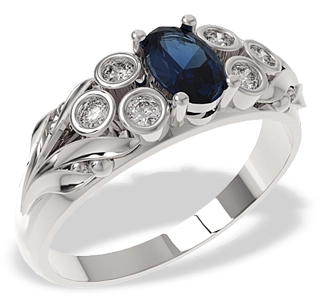 Pierścionek z białego złota z szafirem i diamentami LP-38BPierścionek z białego złota z szafirem i diamentami LP-38BPierścionek z białego złota z szafirem i diamentami LP-38B