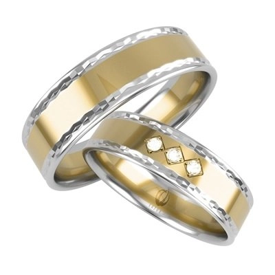 Obrączka damska z cyrkoniami, męska bez kamieni.