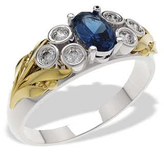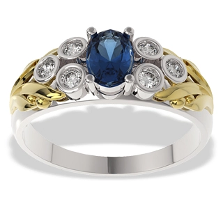 Pierścionek z białego i żółtego złota z szafirem i diamentami LP-38BZPierścionek z białego i żółtego złota z szafirem i diamentami LP-38BZPierścionek z białego i żółtego złota z szafirem i diamentami LP-38BZ