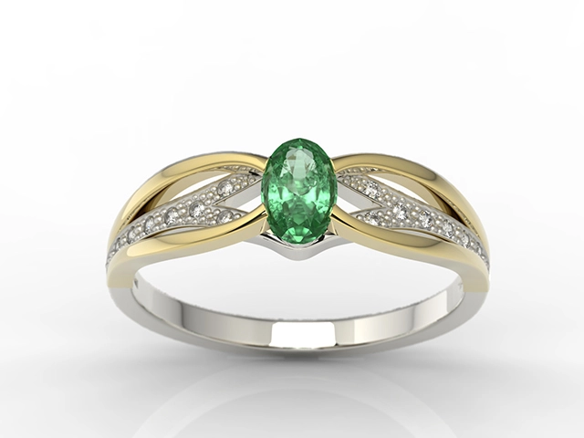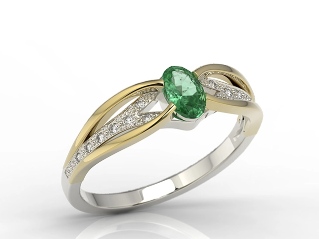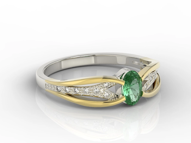 • Pierścionek z białego i żółtego złota ze szmaragdem i diamentami LP-39BZ