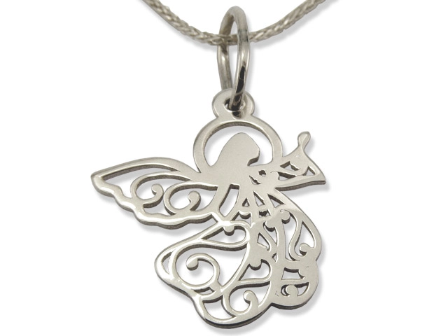 Wspaniały wisiorek w kształcie Aniołka. Wykonany ze złota białego próby 585.