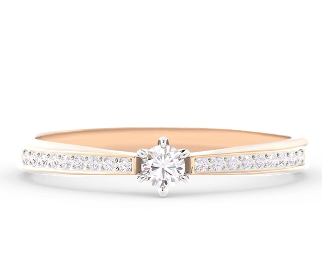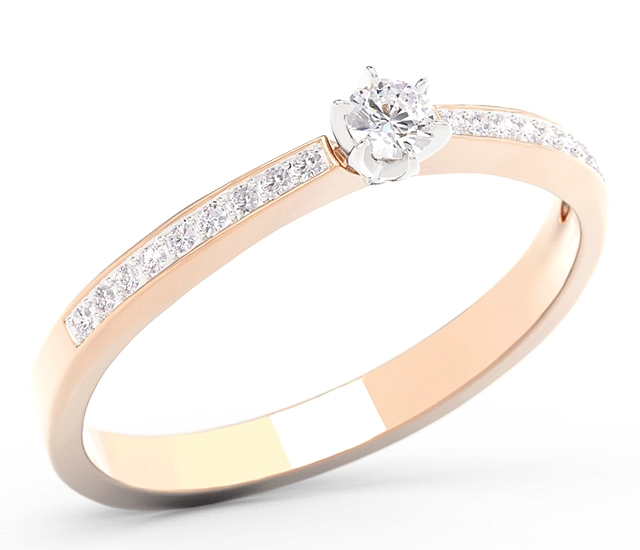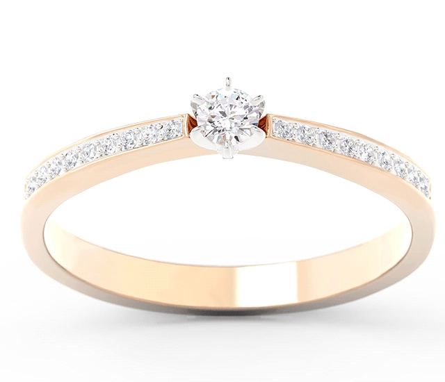 Niezwykle elegancki kamień szlachetny jakim jest brylant można przełamać powiewem świeżości co właśnie uczyniliśmy tworząc ten projekt. 19 diamentów o brylantowym szlifie umieściliśmy w oprawie z różowego oraz białego złota. Uzyskaliśmy pierścionek, który pięknie prezentuje się na dłoni każdej kobiety.