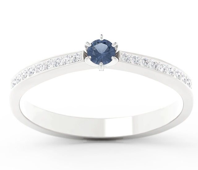 W szczytowej części tego pierścionka umieściliśmy szafir wybierany jako ten kamień szlachetny, który ma zdobić pierścionek zaręczynowy. Uważany jest za kamień miłości, który zawsze cudownie podkreśla kobiecą urodę.