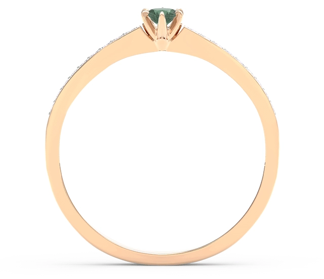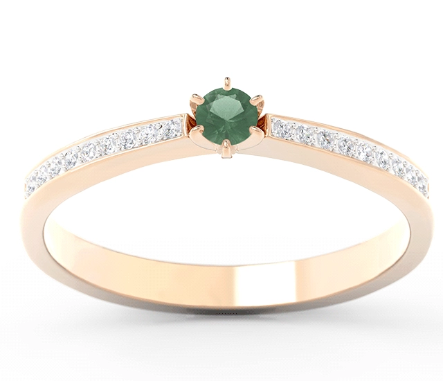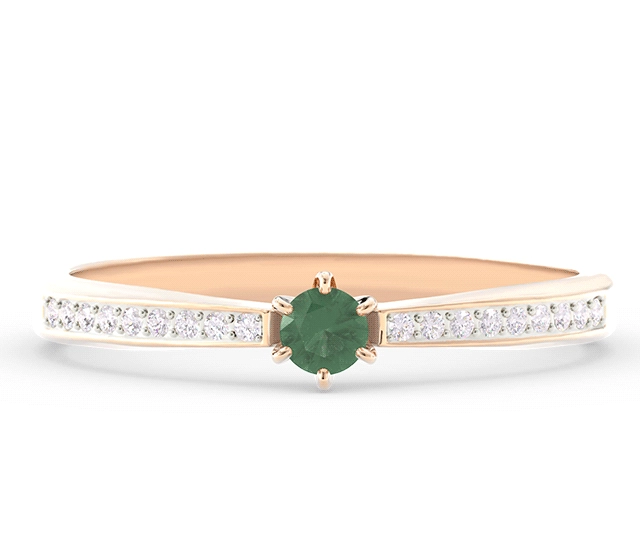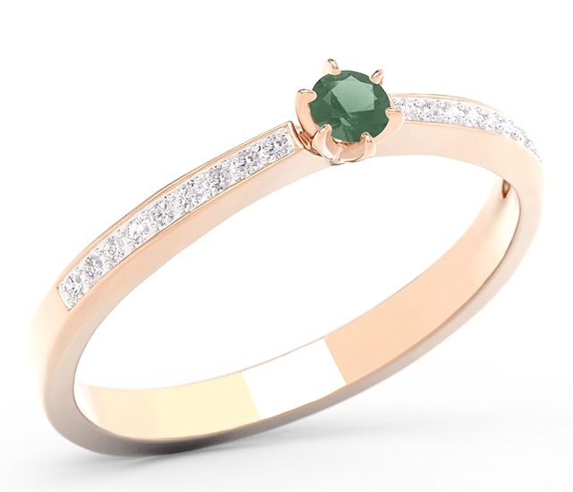 Na pierścionek ten składa się jeden, największy kamień- szmaragd oraz 18 diamentów o brylantowym szlifie. Wszystkie kamienie są starannie przymocowane w oprawie z różowego złota pr.0,585, a elementy przy brylantach są dodatkowo pokryte warstwą rodu przez co nie musimy się obawiać o ewentualne ich wypadnięcie.