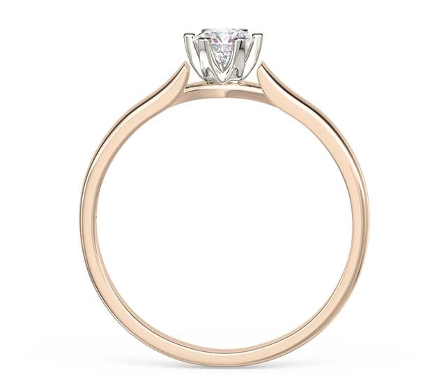 Różowe i białe złoto to wspaniała synteza piękna, która jako alternatywa dla tradycyjnego kruszcu, staje się coraz bardziej popularna. Pierścionek z brylantem umieszczonym na podwyższonej koronie, stanowi klasyczny wzór idealny na zaręczyny.