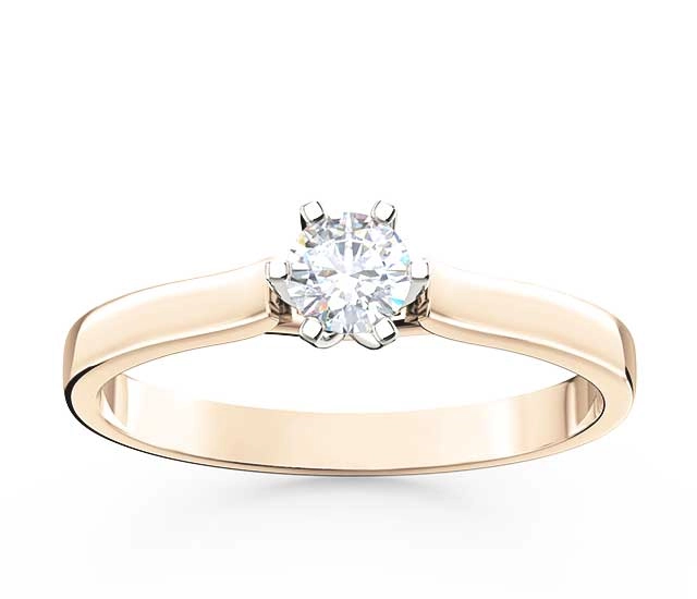 Pierścionek zaręczynowy z różowego i białego złota z brylantem, idealnie sprawdzi się jako symbol wiecznej miłości. Trwałość niezniszczalnego diamentu i blask złota o ciepłej barwie, reprezentują nierozłączność i namiętność. Uwydatniony kamień szlachetny, jeszcze bardziej zachwyca swą okazałością, stając się wyjątkową ozdobą kobiecej dłoni.