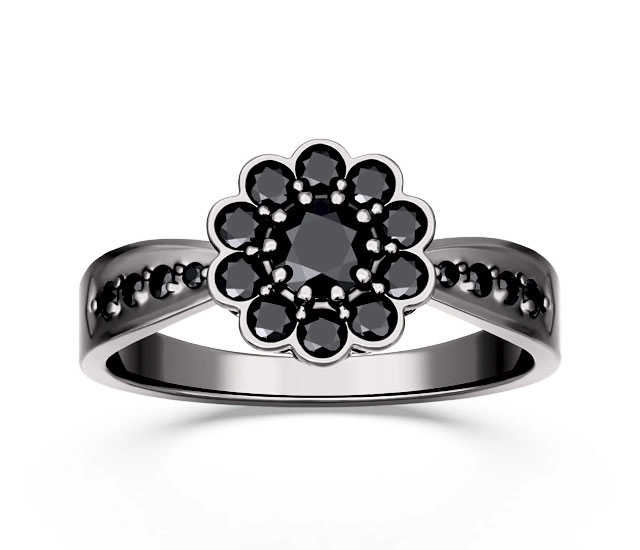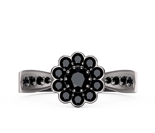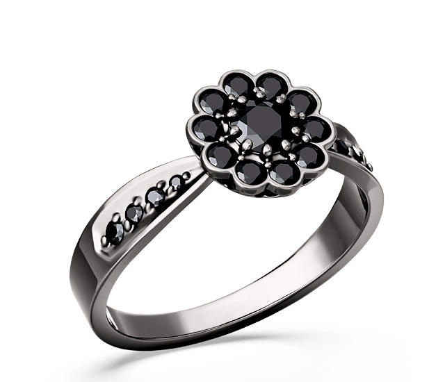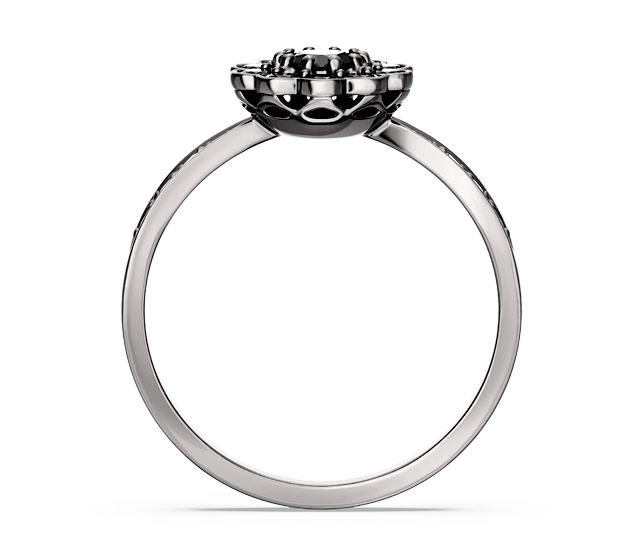 Uroczy kształt kwiatuszka i poboczne kamienie to czarne szafiry. W pełni podkreślają one kunszt jubilerski prezentowanego pierścionka. Spektakularny kolor biżuterii sprawia, że w każdej sytuacji będzie ona idealnym dopełnieniem zarówno szykownych jak i codziennych stylizacji.Zakochaj się w ciemno-granatowej głębi cudownego szafiru!