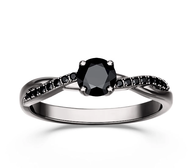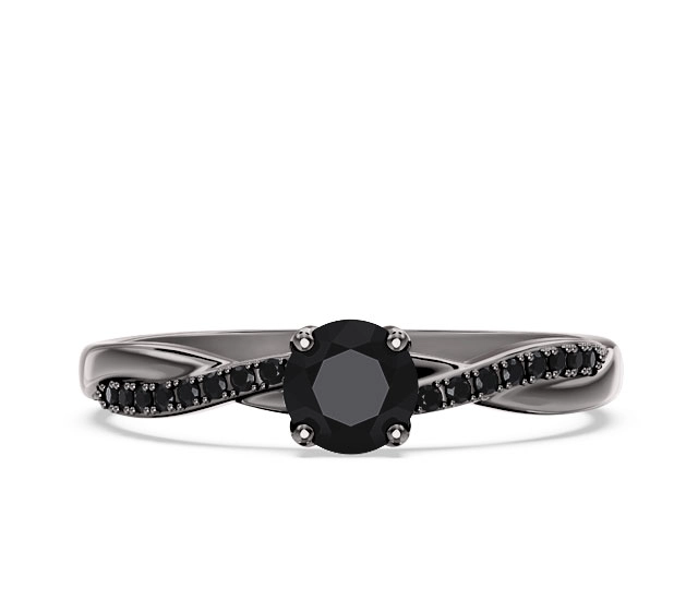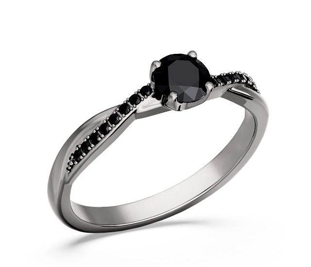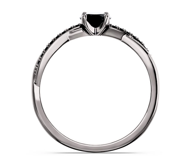 Wbrew pozorom, pierścionek ten został wykonany z białego złota. Warstwa czarnego rodu, która nadaje mu metaliczną, ciemną barwę to także dodatkowe zabezpieczenie przed uszkodzeniami mechanicznymi. Czarny pierścionek jest jubilerskim powiewem świeżości wśród biżuterii z klasycznego złota.