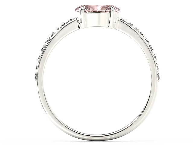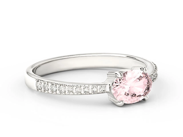 Pierścionek z białego złota z jasnoróżowym centralnym morganitem został wykonany w nowoczesnym stylu. Do ich stworzenia zainspirowała nas delikatność i subtelne piękno charakteryzujące wyłącznie kobiety. Morganit symbolizuje optymizm i miłość, a także wpływa na pewność siebie i poczucie bezpieczeństwa.