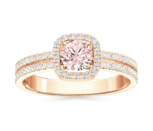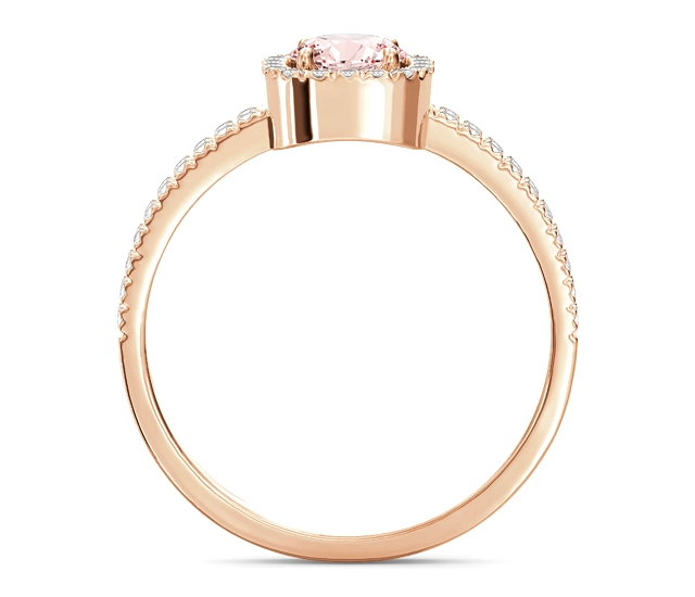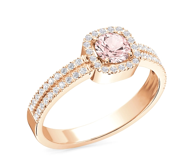 W czym objawia się wspaniałość różowego kamienia szlachetnego w prezentowanym pierścionku? W połączeniu ze złotem o podobnej barwie, jego kolor staje się wyraźniejszy, a jego delikatność urzeka jeszcze bardziej. Obrączka, którą dodatkowo zdobią cyrkonie, pięknie uwydatnia jubilerskie walory, stanowiące o wyjątkowości tego modelu.