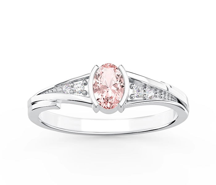 Jasnoróżowy kolor morganitu, który dodatkowo eksponują cyrkonie kojarzy się z romantyzmem, miłością, spokojem, a więc i ze szczęściem. W związku z tym, pierścionek z białego złota z morganitem idealnie sprawdzi się jako podarunek zaręczynowy. Ciepła barwa i spektakularna prezencja tego jubilerskiego okazu otworzy każde serce!