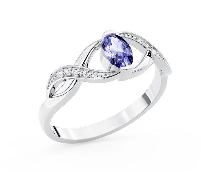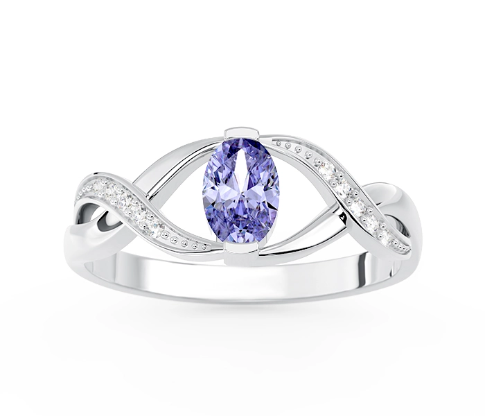 • Pierścionek z białego złota z tanzanitem i brylantami AP-69B